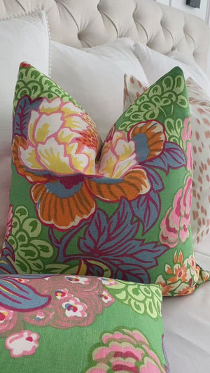 Bright and cheerful, this green large scale print is a modern take on the classic floral and will help bring the outdoors inside. Made from designer textile, each pillow cover will have a unique floral pattern placement and will be the perfect flowery addition to your place!